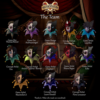 Waking up disoriented and confused, you realise you're trapped in some sort of theatre's backstage. All you can hear is an eerie music and faint laughs...wait, what's on your face?