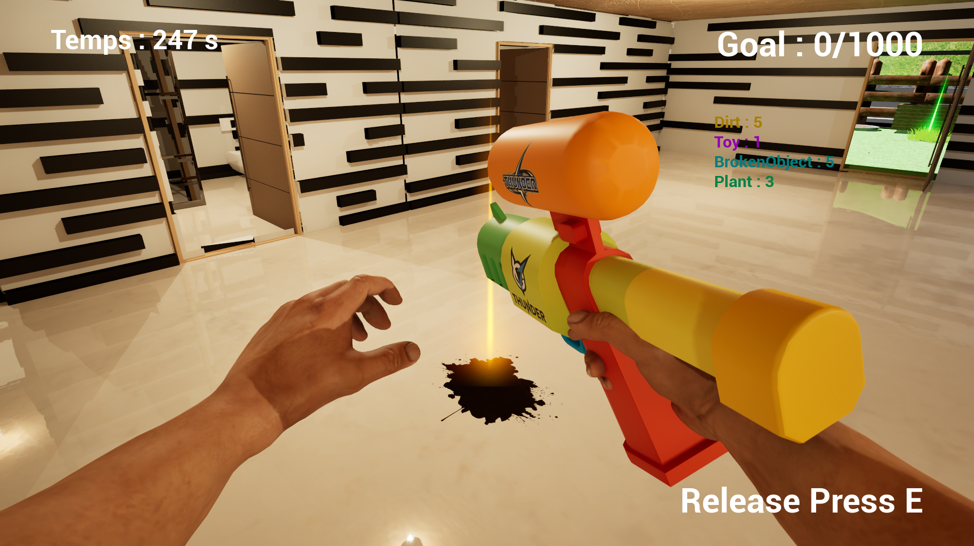 You play as a father who has to take care of the house on a Sunday morning, repeating the same tasks over and over again until he is satisfied and can exit the time loop. It is a first-person game in which you must move around the house performing various repetitive tasks within the given time limit before the game is over. If you complete your goal then you win the game.